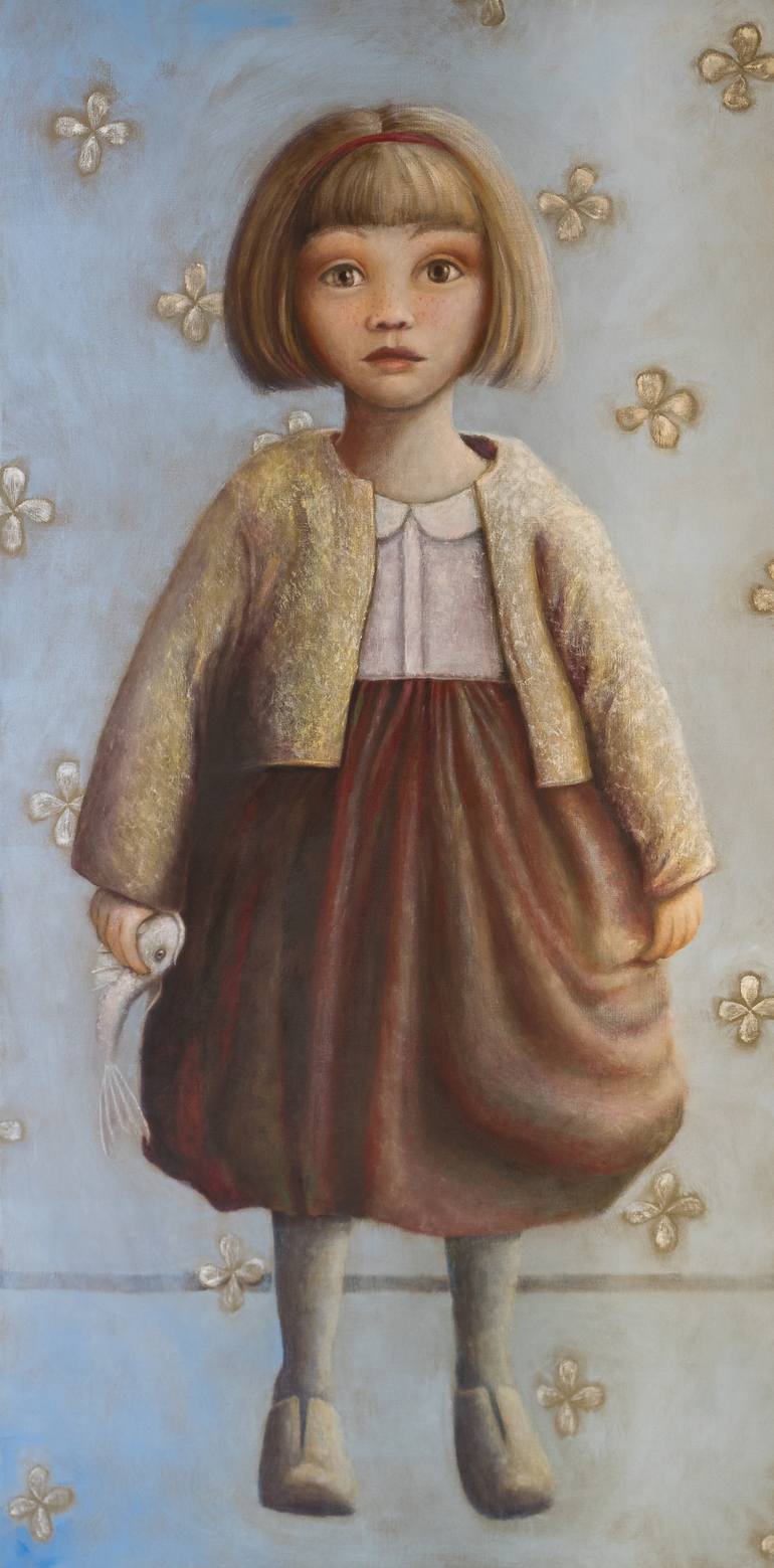 Felicia I is the first of three giantesque paintings of dolls. Or are they girls after all?
