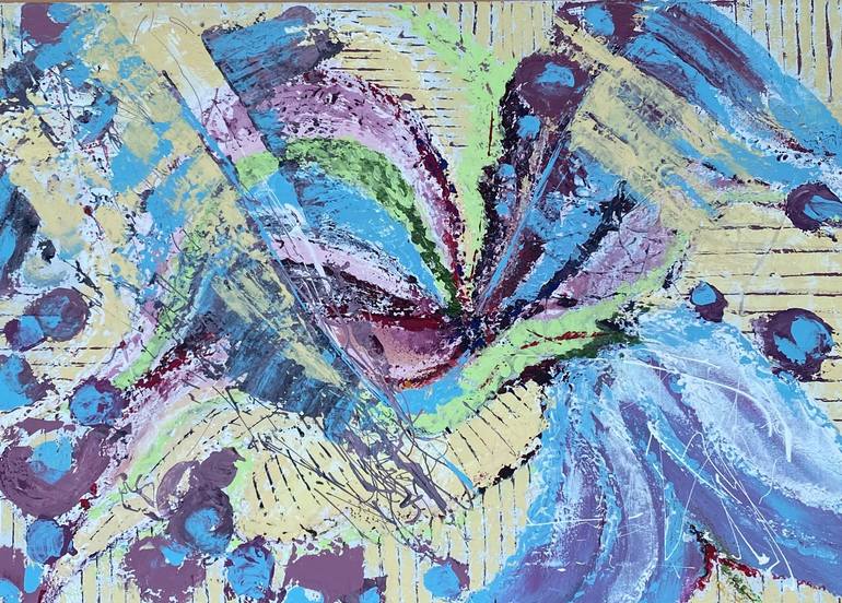 These flowers in spring are everywhere soft pink, purple, bright red, soft blue inspired me to write an unusually feminine abstract flower. I used a multi-layer technique of applying acrylic paint, texture paste and water using brushes, a silicone spatula and a palette knife. The painting "Femininit...