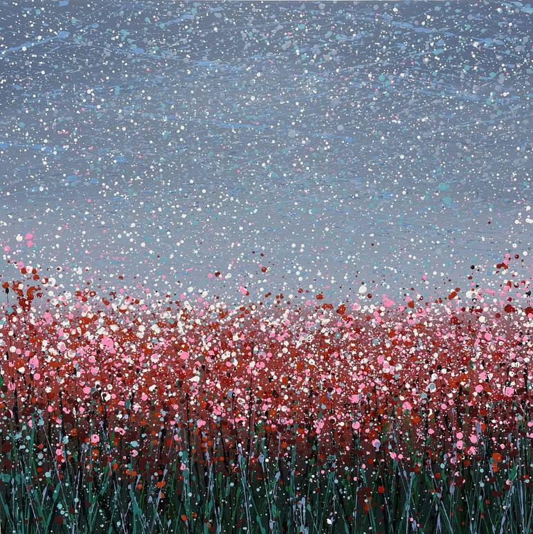Title of work "Field with flowers 64" The painting is written in the style of abstract expressionism.This work was created by acrylic on canvas. The work is signed on the reverse side. Size 80x80 cm