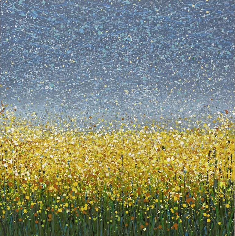 Title of work "Field with flowers 65" The painting is written in the style of abstract expressionism.This work was created by acrylic on canvas. The work is signed on the reverse side. Size 80x80 cm