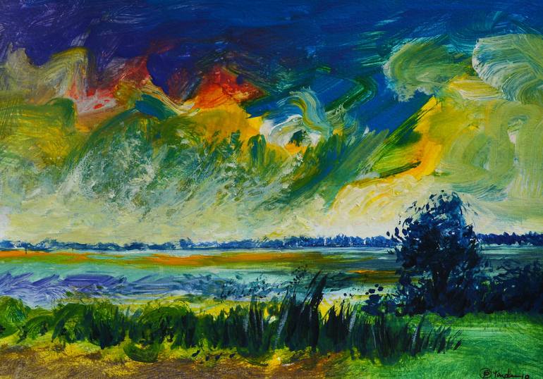 The original painting,medium acrylic on paper.The name of painting is landscape in afternoon,style artwork that clearly show the frame and multi-paneled,when you make order.