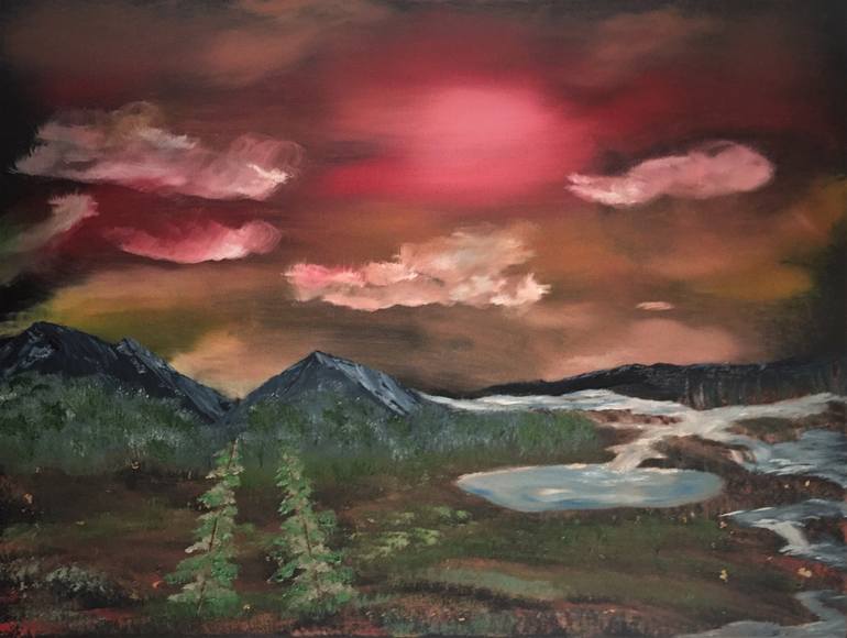 This is the final result of Fields of Gold. The same canvas was changed 3 times continuously (same day) as I kept envisioning something different with it. I am very happy with the result! A very serene, moody landscape filled with earthly colors and things to see! From mountains to trees, to little...