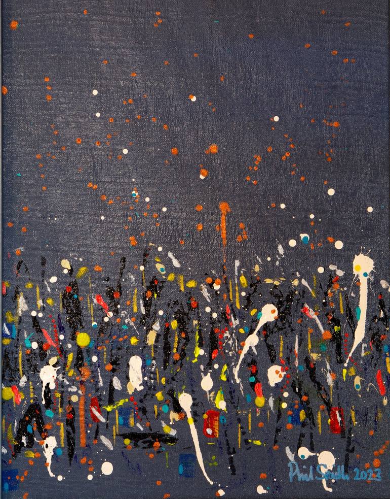 'Fiesta' is a small but exuberant abstract painting. Marks were made with a variety of techniques, including dripping paint. To me it feels like a party or fiesta or festival, but you may see something different. It would suit a small wall or a collection of smaller paintings on a large wall. 'Fi...