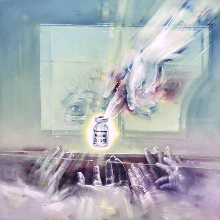 Covid19 situation inspired me to paint this artwork. This painting concept related with invent covid-19 vaccine, invented vaccine was milestone to reduce covid19 virus. When this panting idea was generated in my mind, I started this artwork (2020), this is an Oil on canvas painting and detailed work...