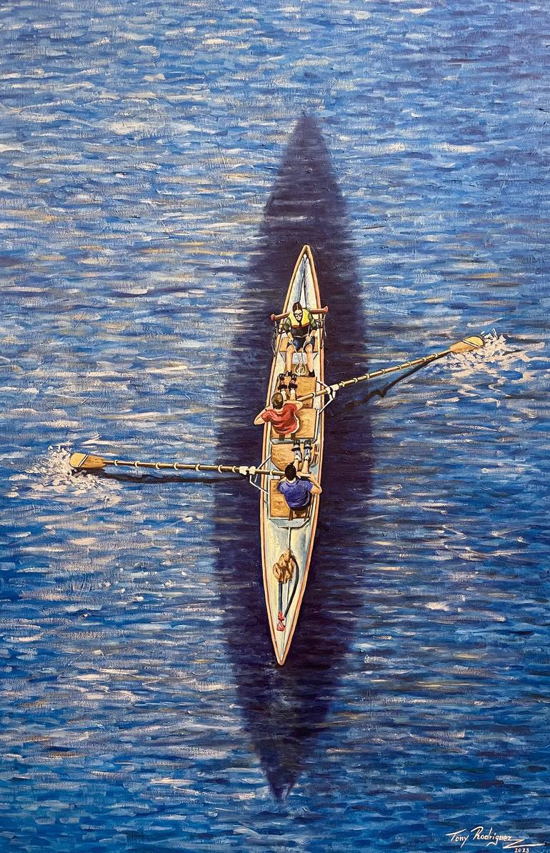 This work tells us about never giving up, about moving forward in the face of any adversity. If we look at the shadow of the boat in the water we realize that it is bigger than the boat, that is the immensity of our dreams.