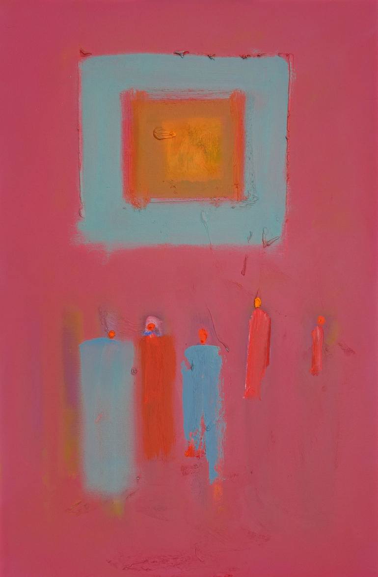 Influenced by Rothko, Turner and Rembrandt.. 'Figures in a Souk' is a series of experimental oil paintings. I start out only to paint . The figures emerge from the canvas as the process develops. I usually like to paint over existing works of mine as that provides a unique starting point and existin...