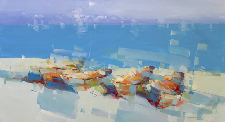 Artist: Vahe Yeremyan Work: Original Oil Painting, Handmade Artwork, One of a Kind Medium: Oil on Canvas Year: 2024 Style: Impressionism, Title: Fishing Boats Size: 30" x 56" x 1'' inch, (76x143x3 cm), Unframed, Stretched on Wooden Bar, Gallery Wrapped, Ready to Hang. Yeremyan is an American ...