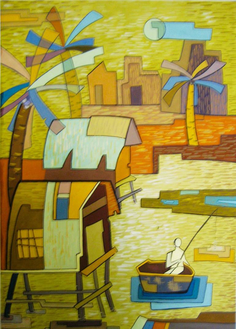 The painting "Fishing Under the Moonlight" is a poetic work of art, depicting the image of a person fishing in the gentle light of the night. The combination of the golden light of the moonlight and the deep blue of the water creates a mysterious atmosphere, evoking a sense of tranquility and relaxa...