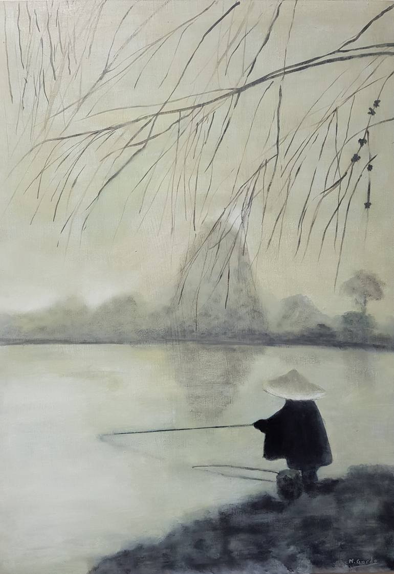 oil on wood Inspired once again by old Japanese photographs, I have painted this work. I love working with the special light that old photographs have