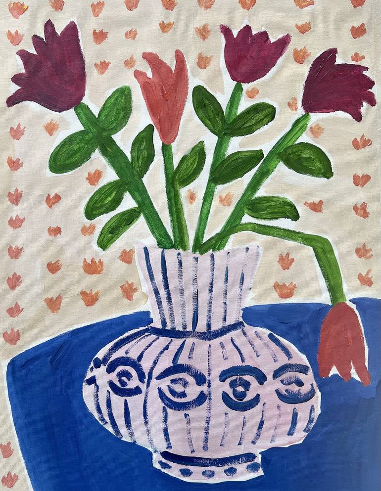 Within a series of floral paintings studying motif, composition and colour combinations this one us approached with the idea of a minimalist style.
