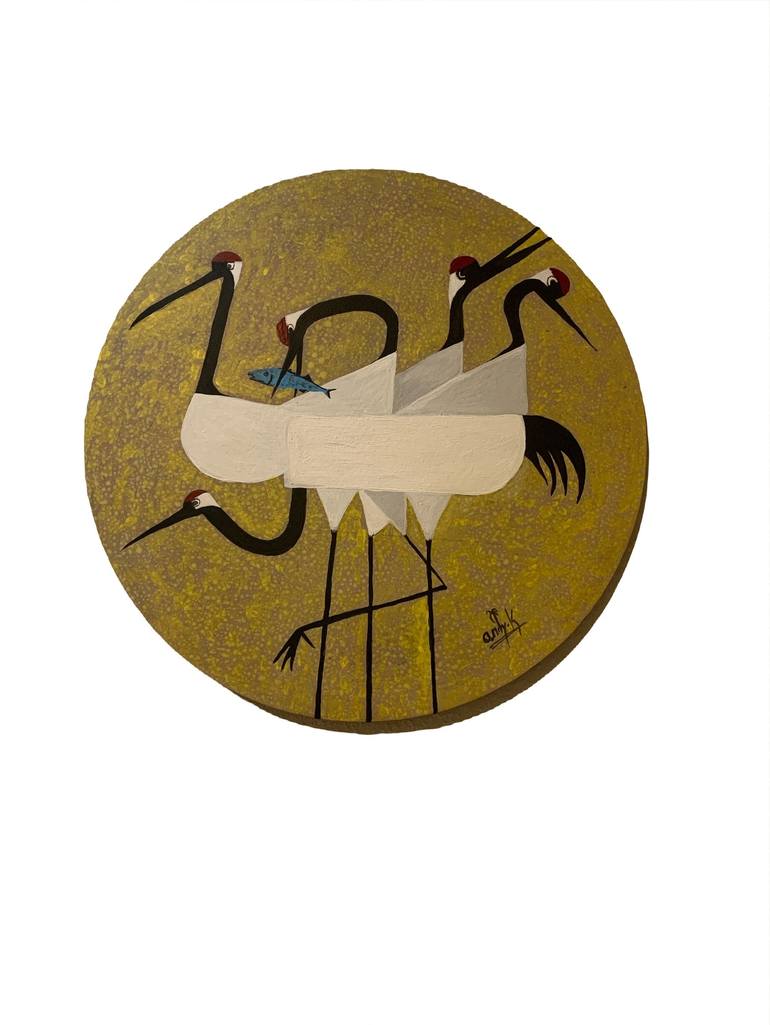 A minimalist depiction of flamingo, emphasizing themes of unity, harmony, and the beauty of nature through simple geometric shapes. size: 50/50cm Acrvlic Canvas