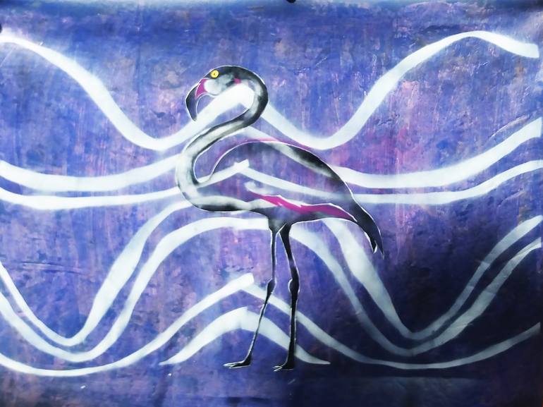 A retro theme swirls through a transparent flamingo that is engrossed and overshadowed by rays of neon light. The artist has skillfully brought through a glowing effect that illuminates the whole painting and has exquisitely painted the transparency of the bird to complement the backdrop in this abs...