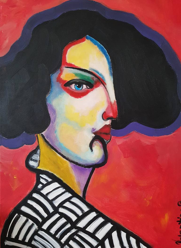Impressionism with abstract elements. Modern, contemporary art. Portrait inspired from the '20s