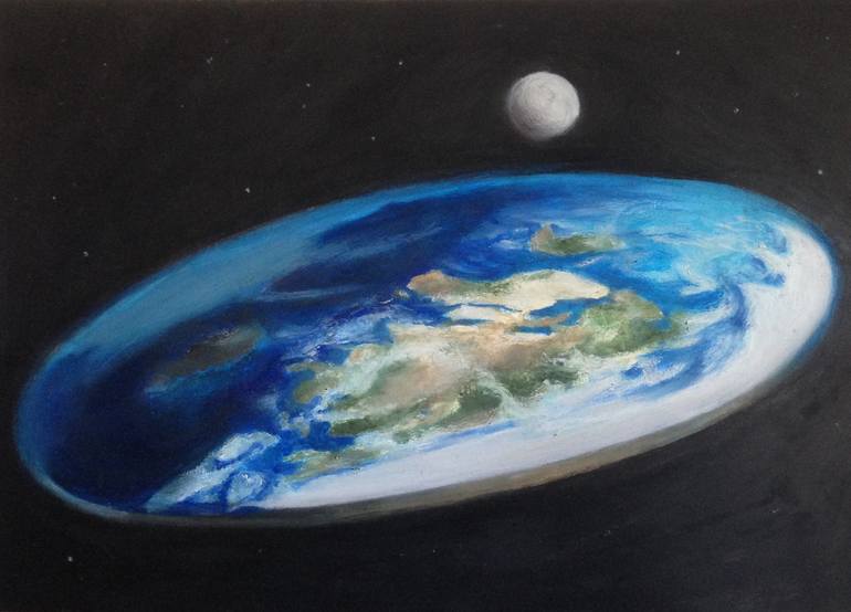 Inspired by the trend of the Flat Earth Conspiracy. Signed and dated on behind. Also on Instagram: