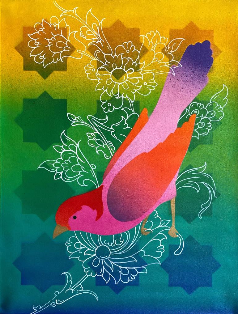 Flight of Awakening (پرواز بیداری) captures the quiet strength of a lone bird in mid-flight, symbolizing a journey of spiritual awakening and freedom. The bird’s graceful movement, framed by intricate geometric patterns, invites the viewer into a space of self-reflection and inner peace. Without th...