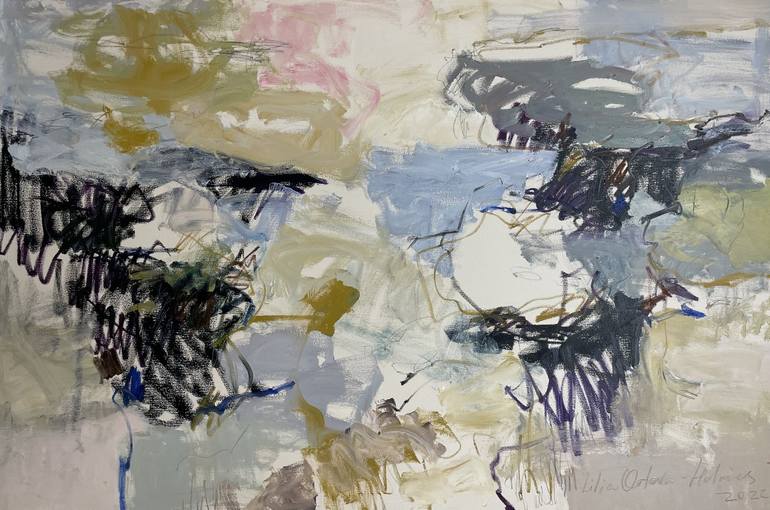 Large abstract and gestural expressive painting. Inspired by passing clouds, thoughts, memories and reflections.