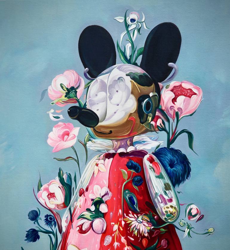 " Floral Mickey " 2025, Oil on wood Panel, 26x24 inches