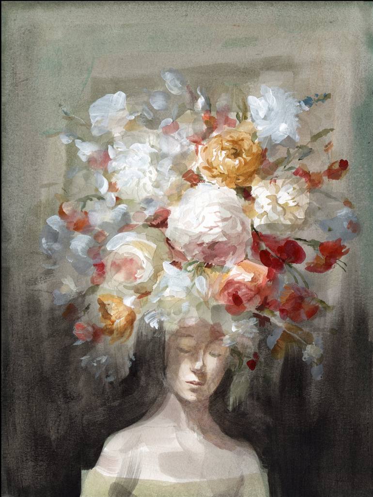 Immerse yourself in the enchanting world of Floral Serenity. This captivating watercolor portrait seamlessly intertwines the grace of a woman with the timeless beauty of a blooming bouquet, creating a harmonious symphony of elegance. Each delicate petal and every stroke of the artist's brush tells a...