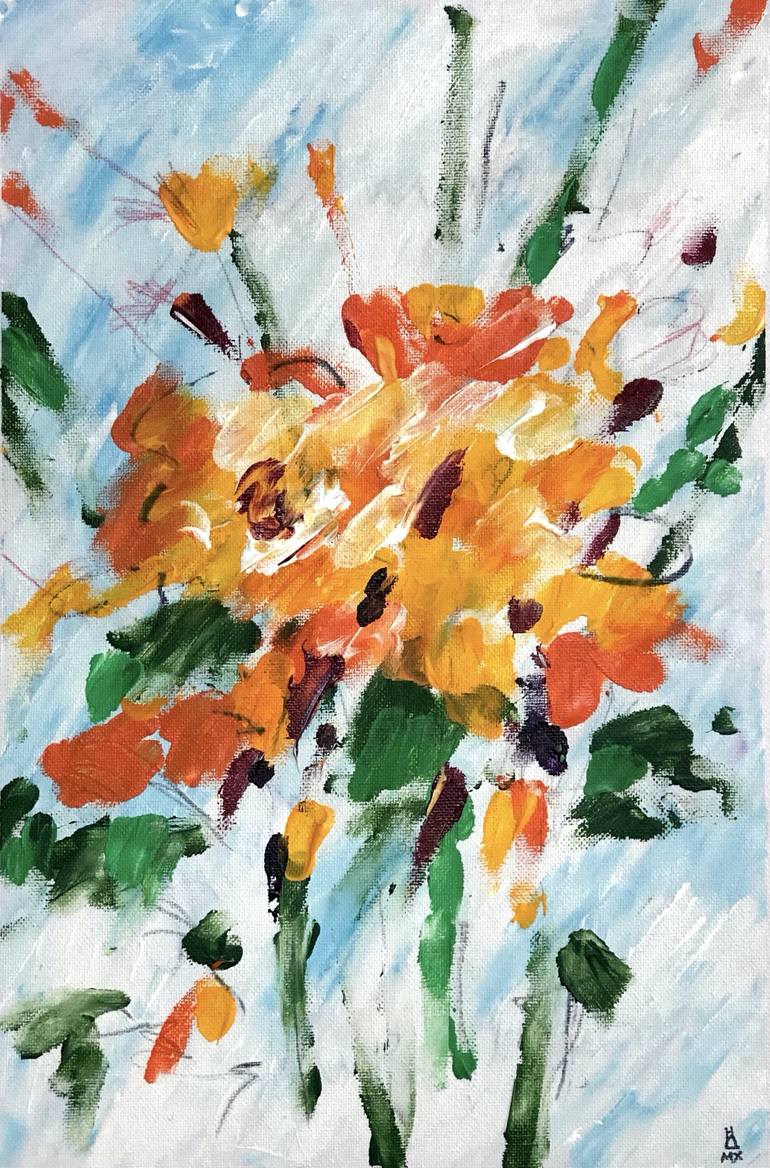 Part 1 of 2 from abstract "Floral Untitled 2" diptych. 2020 Original painting by Michael Khripin. Signed on front and back sides (date, location, signature, title). This painting has an additional 2.5cm (1 inch) of extra canvas on each side. Unframed. This work will be shipped in a protected tube.