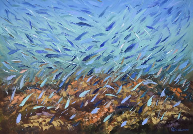 Olga Nikitina is a Russian artist was born in Ukraine and one of the new pioneers in the growing field of underwater painting. Painting always was a big part of my life. But new work opportunities and environments gave me new inspiration – and a new direction for my paining. In 2008 I became a scuba diver. In 2015 I became a scuba dive instructor and moved from Russia to live in Egypt. The Red Sea is a very unique ocean - with its corals and amazing marine life. The empty monotonous desert landscape contrasts sharply with the bright colors and rich underwater life. But it’s not a secret that the marine environment is endangered nowadays, and we, as responsible citizens, need to care for and protect our ocean. Scuba Divers witness the changes happening in the ocean – and can be among the first to raise the awareness of others to these growing problems. Nowadays most scuba divers have underwater cameras, to record the treasures and tragedies happening underwater – in this case evidence of the destruction of marine life. Art too, is a very effective tool and medium to communicate these messages. The main focus of my painting is underwater marine life. Underwater I have learnt not only about the many life-forms, but the shapes and colors of everything in that realm continue to blow my mind. After diving, when at home I work hard to remember what I have just seen underwater – and what I remember is not always exactly what I wish to show - this realization led me to underwater painting – taking a slow exposure photograph right next to my subject. I have been working as a dive instructor in Egypt for the last 3 years. I absolutely fell in love with the Red Sea, with its beautiful and colorful underwater life, spectacular drop-off views and magnificent coral reefs. I love to take underwater pictures but I feel as well that it is not enough to communicate my admiration for the Red Sea. I realize I can do it only through my soul – through my painting. And the best way to feel inspiration it is to be there, to be a part of marine life, to be immersed in the underwater environment. The original pioneer of underwater painting was Andre Laban, the engineer of Cousteau’s team. He was a chemist, so he created a special cover for canvas and he found out what colors are possible to use underwater for painting, and that it is not toxic for the environment. He has been painting underwater for 20 years and his works are now all over the world.