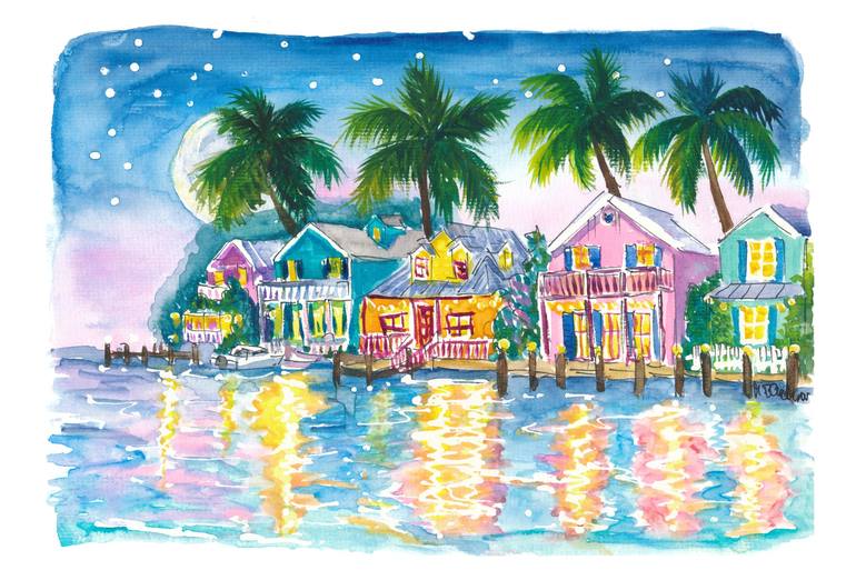 Florida Keys Waterfront Houses Shine Bright in the Night