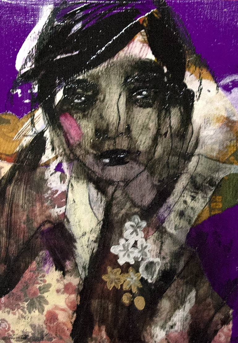 Flower Girl-V (H227×W158mm) mixed media on wood