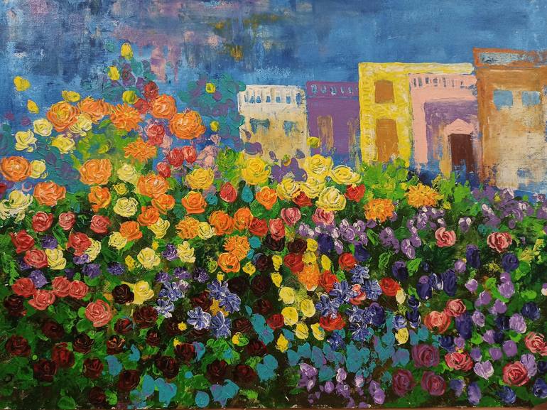 Product Description: Immerse yourself in the tranquil beauty of "Flower Hedge", an original masterpiece by acclaimed abstract artist Herendra Swarup. This captivating 24” x 18” acrylic painting on canvas showcases a stunning blend of light pastel colors that evoke a sense of serenity and elegance. ...