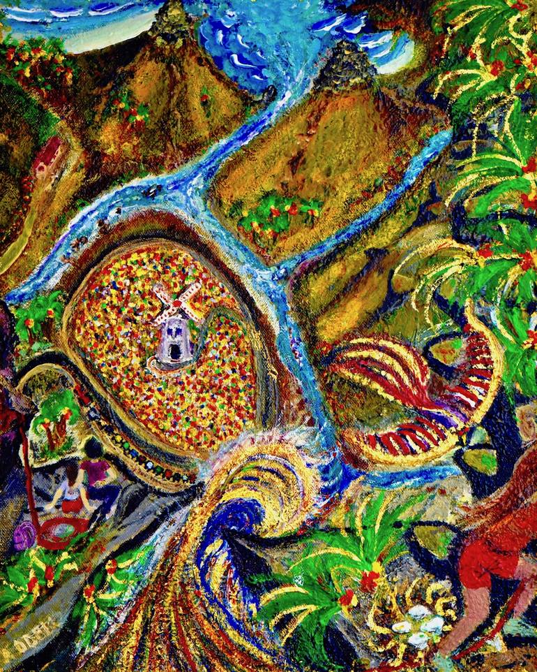 This is one of my most important paintings. I have paintings that may see superior, but this piece was a translation and transformation of my inner soul onto canvas - for the first time. It was a work of love. Acrylic, but 24 carat gold interspersed, it is intended to be just what it is - no deep...