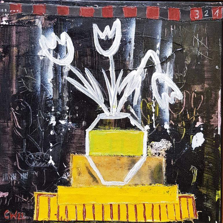 This painting is a cubist-inflected still life of flowers in a vase. My intention is to show the ephemeral beauty. My practice embraces a range of materials including acrylic, pastel, papers, fabrics, gels and markers. I am finding inspiration for my multifaceted works in being a passionate observ...