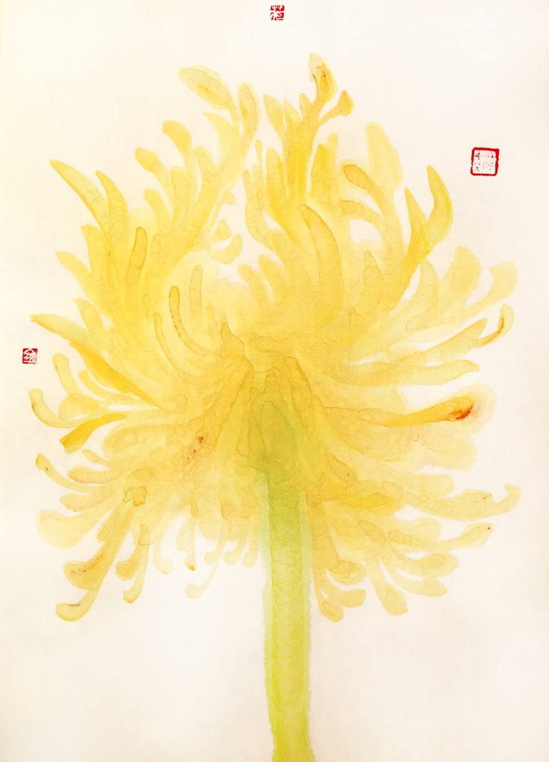 Flower Universe Series 06b is the title of this artwork which is ONE yellow flower. Green light and yellow, very young and bright, full of positive energy. Free and peace. left stamp is mean : gold middle upper is mean : flower right side is mean my full name. Write by artist Poonkanchi 2021 JAN ...