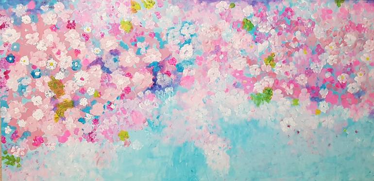 Acrylic on wood Work done with acrylic paint on table emphasizing the color of the flowers and enhancing the texture of the petals with brushstrokes and knifes