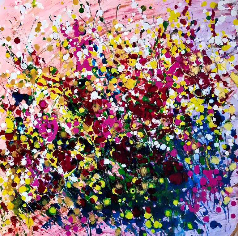 Flowers Abstract Painting Summer Colorful Flower Bouquet Do you feel discolored by the gray everyday life? This Painting offers you to immerse yourself in summer and the joy of colors. Description of what is depicted: Abstract Painting with Flowers, which explodes in a palette of bright colors - yel...