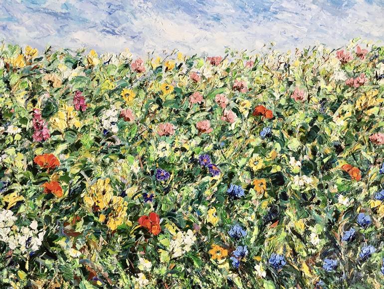 Flowers Blooming Field Impasto Oil Painting On Canvas *Title: „Blooming field“ *Size: 32"x24" [80x60 cm] *Original handmade oil painting on canvas by brush and palette knife. *Made by me - Vilma Gataveckiene. This is not a copy or a print. *Signature on the front and on the back. ...