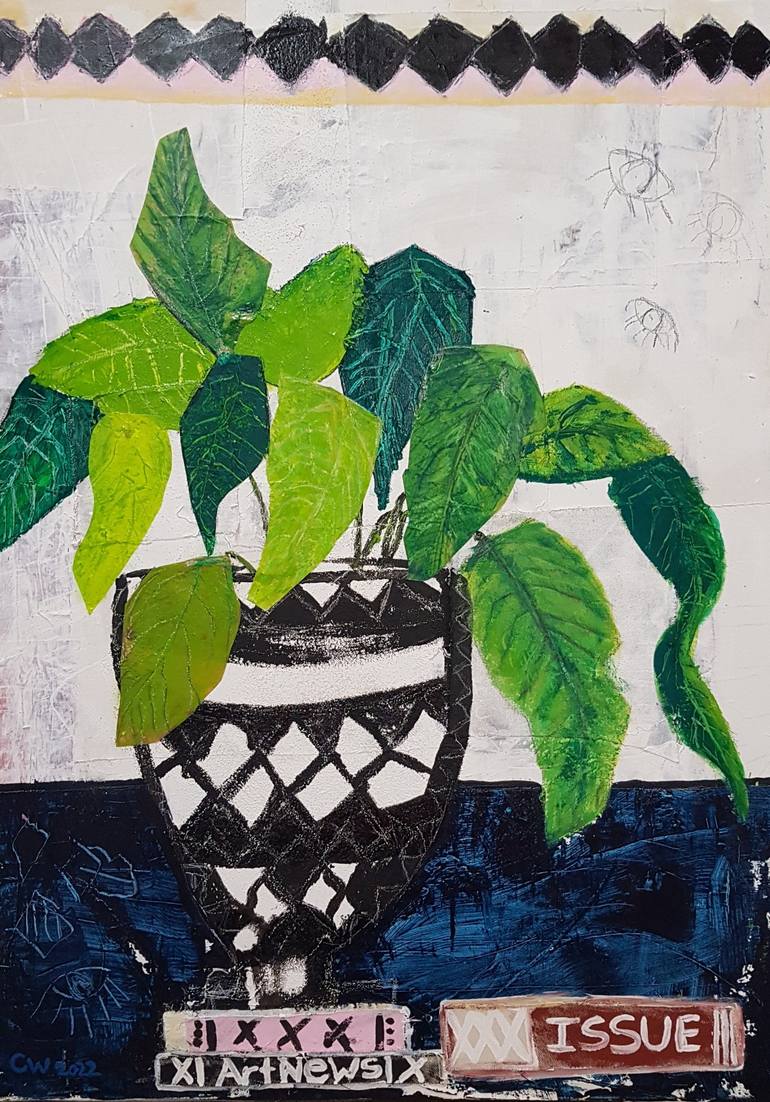 This painting is a cubist-inflected still life of flowers in a vase. My practice embraces a range of materials including acrylic, pastel, papers, fabrics, gels and markers. I am finding inspiration for my multifaceted works in being a passionate observer of everyday life. I build upon the surface...