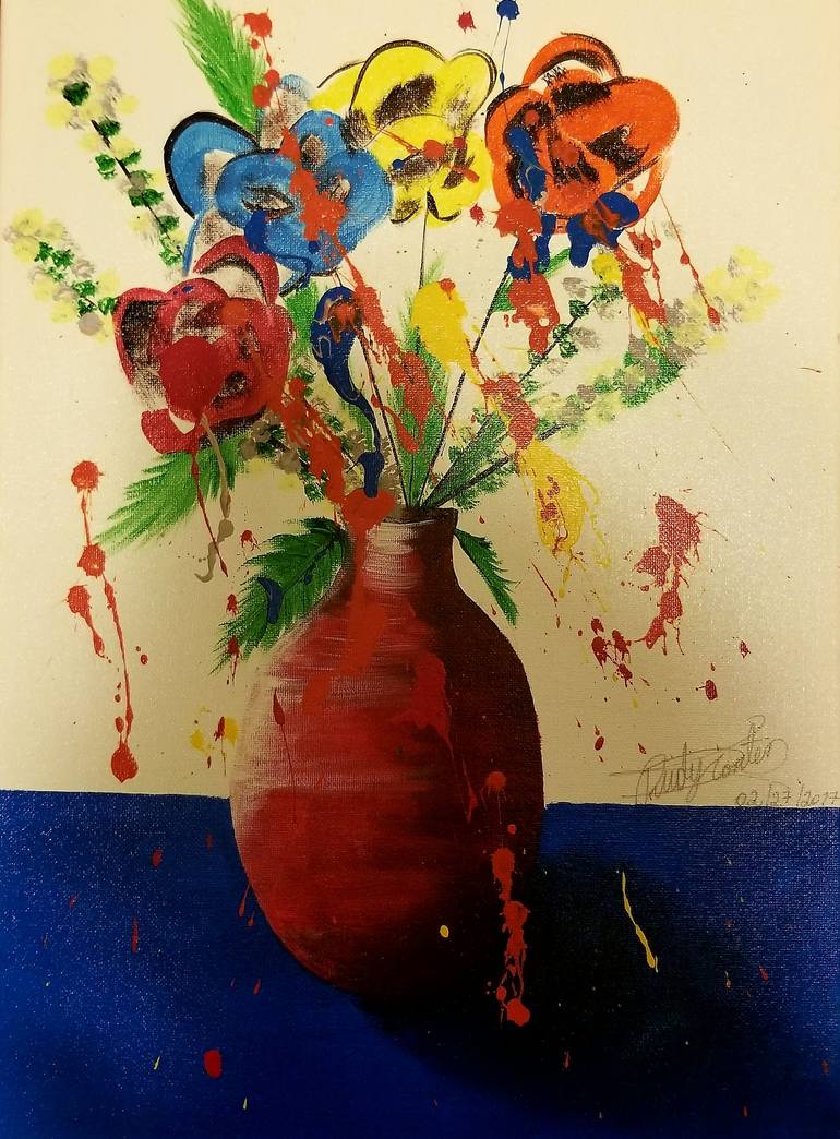 a vase with a few flowers. Perfect painting for the office or room. I let myself be carried away by the rhythm of music and I let it go a little.