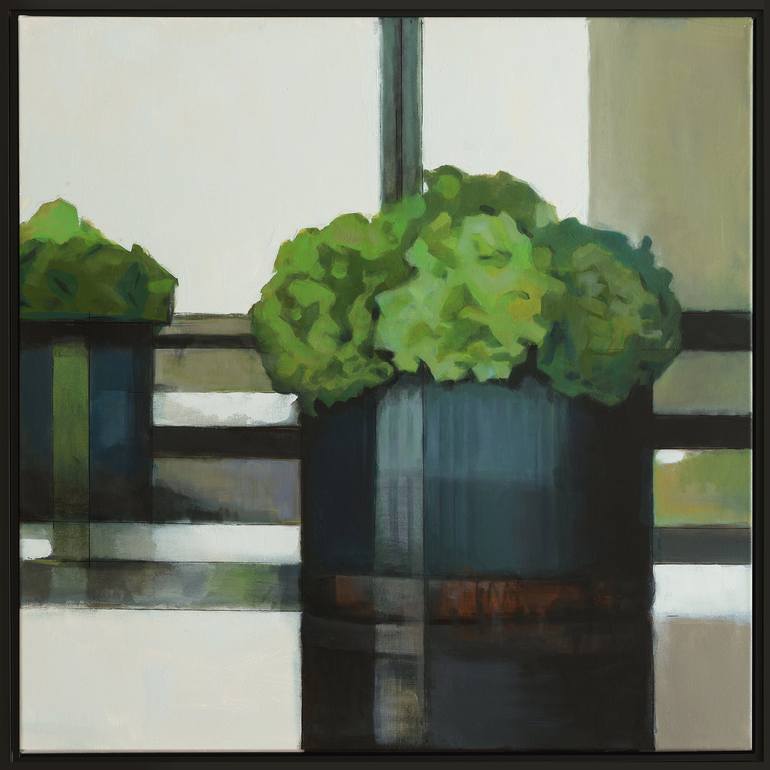 Flowers and Squares Oil, 30x30 inch 76x76 cm by Bo Kravchenko "Bo Kravchenko’s oil paintings are a true celebration of the medium. Working intuitively - with the deftest of touches - he finds beauty in the simple things that surround our everyday lives. I particularly love Bo’s atmospheric landsca...