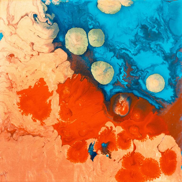 "Jupiter" is a colorful, abstract fluid painting. This original painting is not for sale, but a high quality print on either fine art paper or canvas is available. The original painting was created with professional grade acrylic paint on canvas. This painting has vivid hues of red orange, teal and...