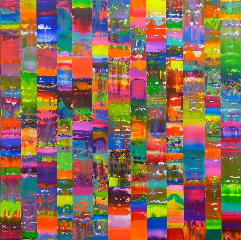 I AM OFFERING THIS PAINTING FOR A SPECIAL PRICE NOVEMBER 2022 This is the second of the Flux series, colours are blended and dragged to create a visual overload, I use a mix of metallic and fluorescent acrylic paints, every work is unique in the combination of colours