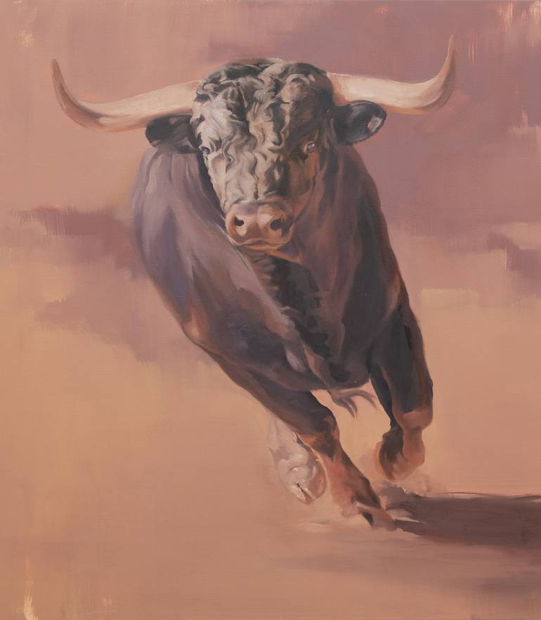 A series of painting dealing with the attention or focused head of the Spanish bull in motion