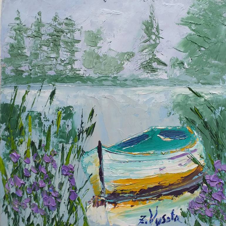 --- Foggy morning. Fog floats over the river with a light haze, plunging everything around in pastel colors. ---- Unique and exclusive 100% hand-painted, Made in oil on cardboard and covered with a layer of varnish. ---- This painting is not framed. ---- The painting is signed on the f...