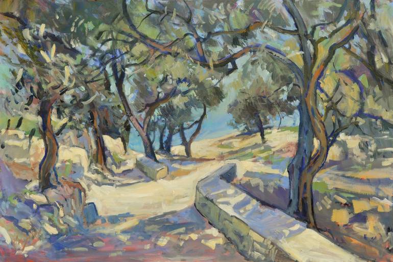 Paxos, one of the beautiful tiny Ionian Islands close to the isle of Corfu in Greece. Marmari Beach near Loggos is my preferred beach where I reside during the Summer holidays. Already since 1987. A great large size impressionistic style oil painting on heavy deluxe quality linen canvas. Will be shi...