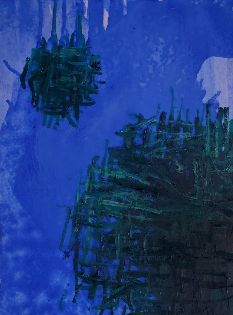 on 140 lb hot press watercolor paper requires framing to be properly displayed. for a fellow painter and friend who died last week.