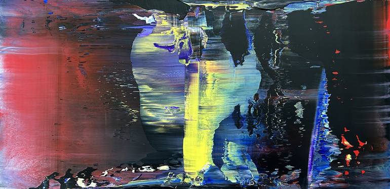 This is a completely unique PMS abstract acrylic painting for your home or office. This piece has a beautiful, modern design aesthetic. The colors streak and overlap, while also being contrasted by subtle and hard shifts. This piece is dark and mysterious, like a two opposing forces of nature meetin...