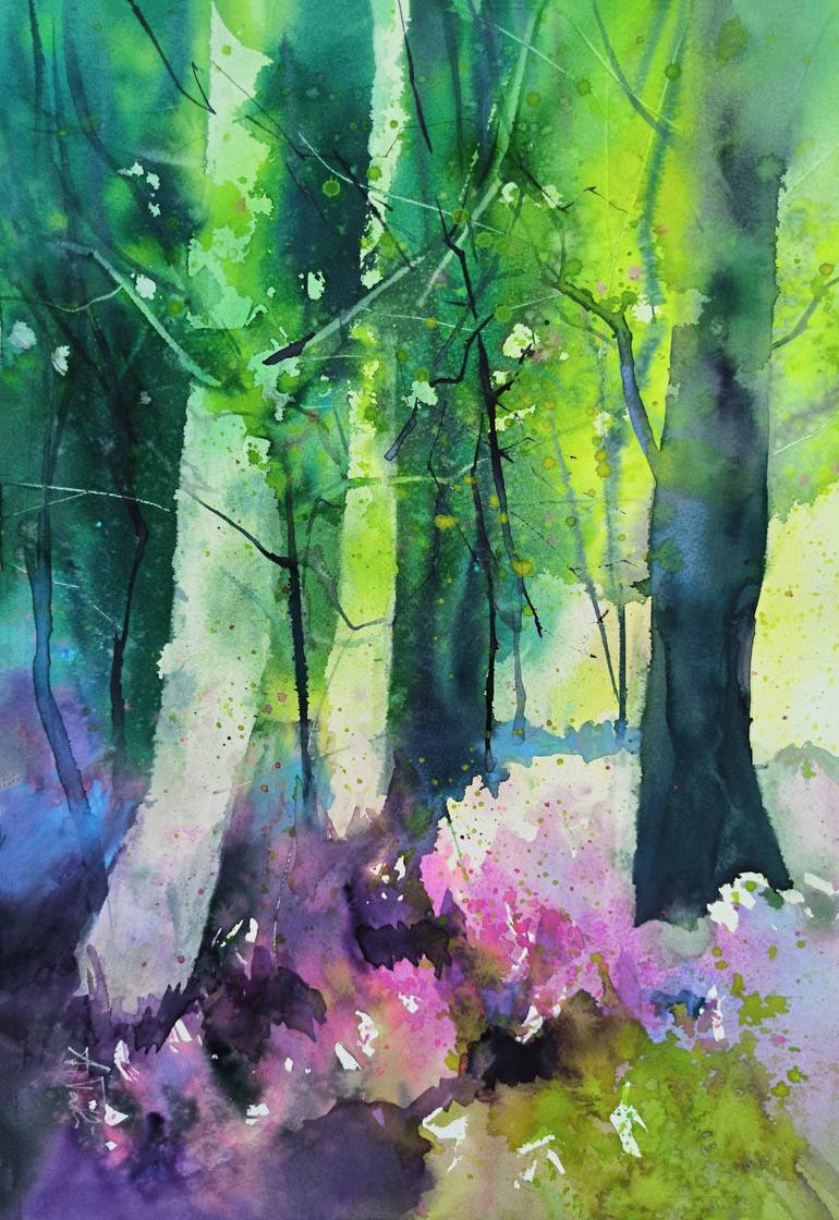 Painting a landscape watercolor on site is always an incredibly beautiful experience. Once I found a nice spot to sketch and paint, I immediately felt connected to the environment around me. I spent hours concentrating on taking everything in and capturing it in my sketches. The forest with all its ...