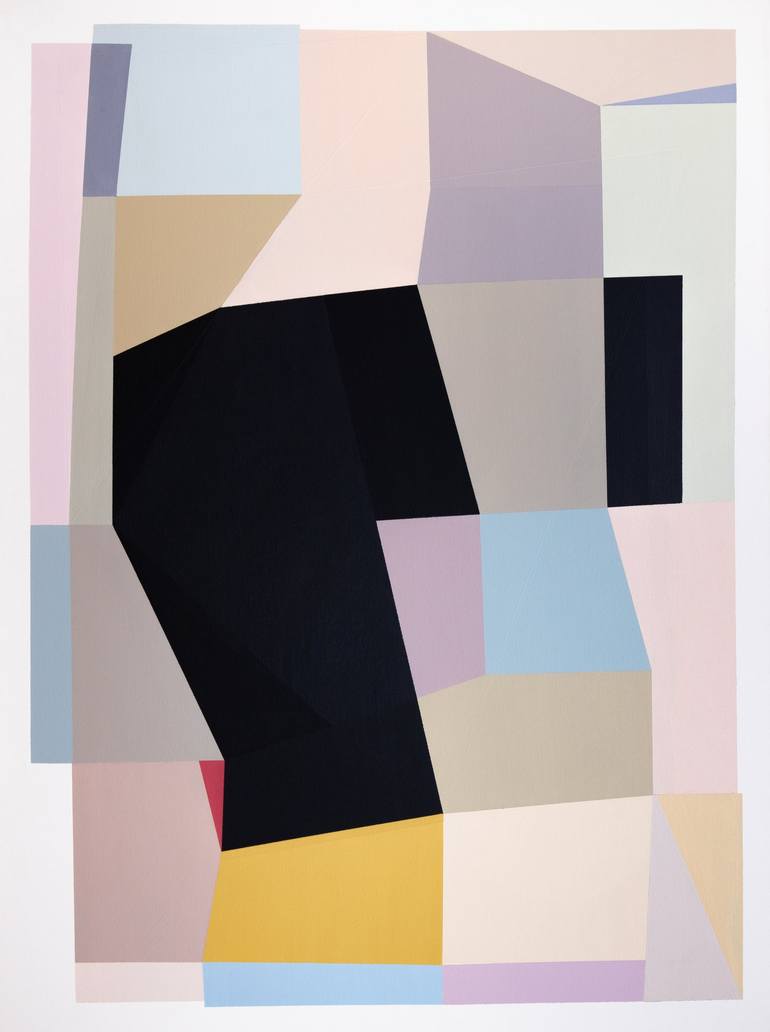 The only thing I seek is to achieve a harmonious composition through planes and color, so that each plane of color is part of a harmonious symphony. On this occasion, a large black mass of irregular shape occupies most of the composition and marks its internal rhythm. I like to use acrylic paint i...