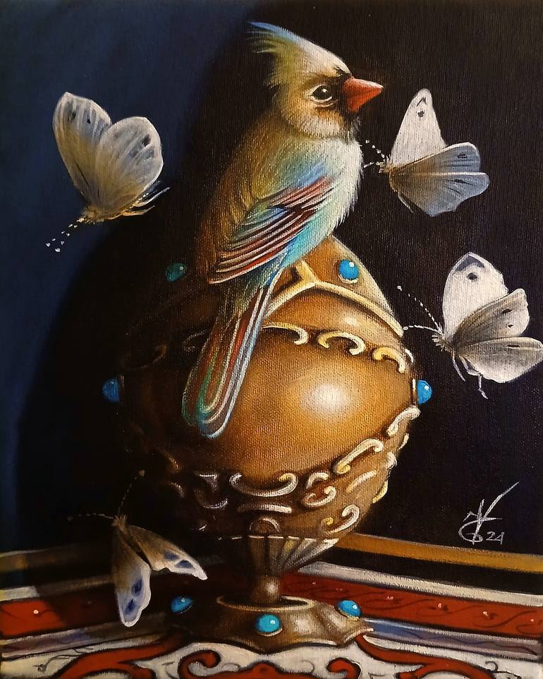 Original acrylic on canvas 22 x 27 cm from my series " The small and the eggs" The painting is unframed but ready to hang .