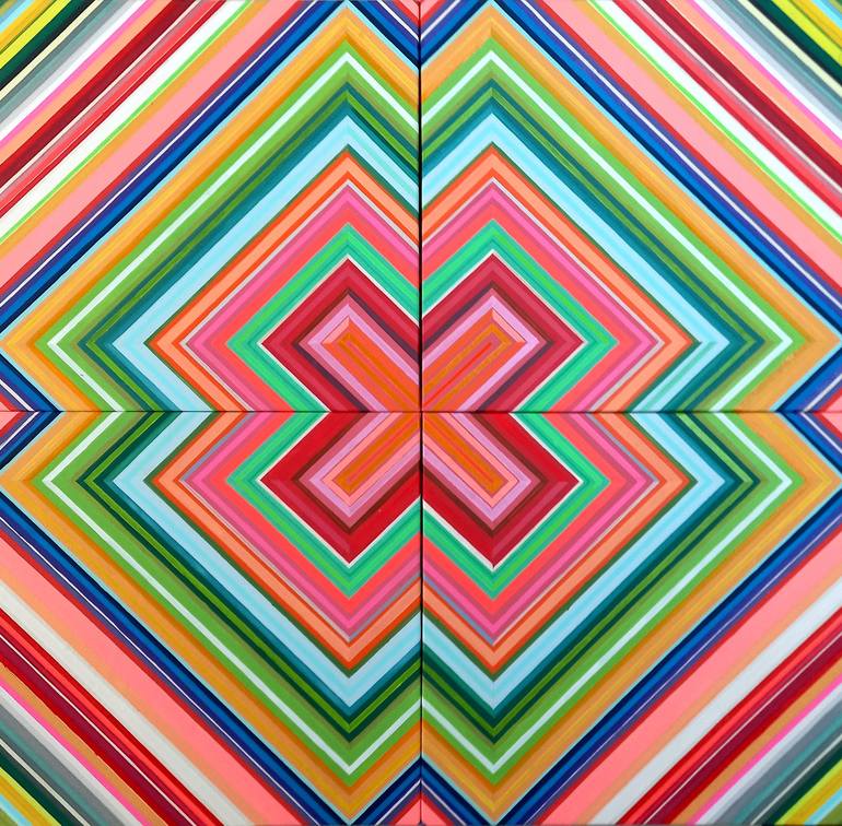 Graduated in Architecture at the "Ecole d'Architecture Paris Val-de-Marne", optical and kinetic art have always figured in the artist's identity. His abstract proposal intends to break the existing conservative relations and create new perspectives through textures, optical states, and movements. The result of this search, the artist calls "abstract-chromatic-lyrical", creations in which he explores abstraction through permanent rehearsals of visual color movements, geometric patterns, chromatic progressions, rhythmic musicality, and contrasts. "I feel my creations inserted in a cosmic dimension where vocabulary and plastic grammar are infinite. The representation of reality derives exactly from my kinetic understanding of space and form." From a technical perspective, the resource he uses is acrylic on canvas. Born in 1970 in Colombia, Bemgi lived for years in Europe until he moved, in 2006, to Curitiba in Brazil, where he currently lives. His work as an artist had been dormant during his years of residence in the old world, having resurfaced strongly during his first months in Brazil. According to him, since then he has lived an intense creative routine, the result of which is an extensive collection of works conceived on Brazilian soil. In the last decade, the experience in large centers such as Caracas, New York, Paris, and Barcelona were also fundamental to mature his own concepts in visual arts.