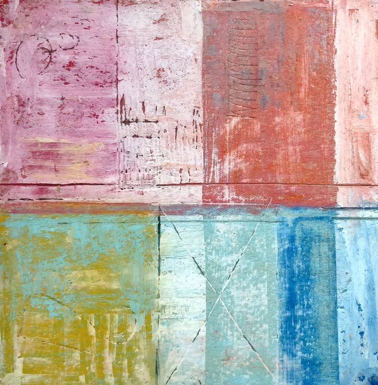 Four square is an abstract oil pastel on paper based on division of squares. Lots of textures and shifting shades enhances the overall composition. This piece was juried into the Phillips Mill 90th Juried Show at the prestigious Phillips Mill Art Association, New Hope, PA. Framed in white washed ...
