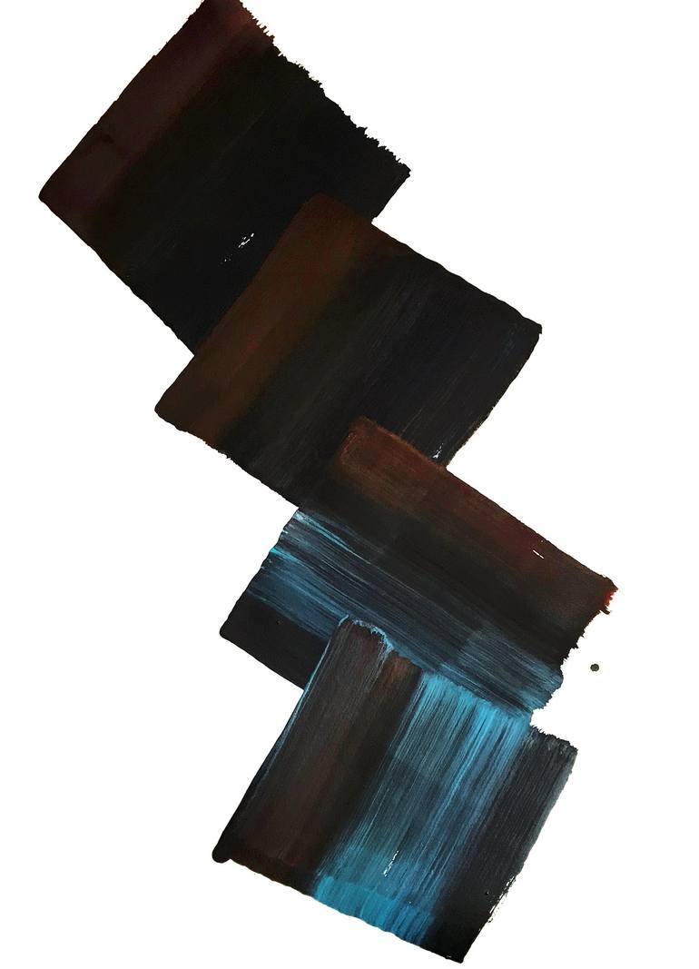 Four squares with different temperament, momentum, and characters. Acrylic on heavyweight archival Arches paper. Ready to frame.