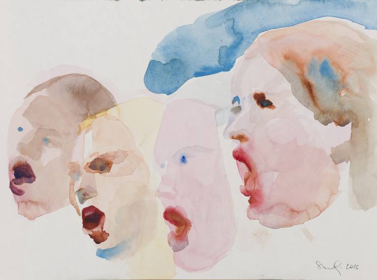 Inspired by music and images of singing faces, Kandinsky's music watercolors and portraits of Marlene Dumas. Not framed, signed in the lower right corner.